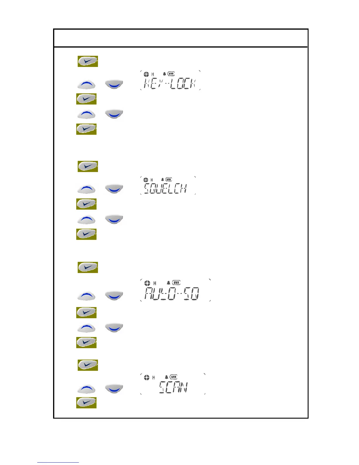 E-Tech EP400 - Key Lock; Squelch Level; Auto Squelch; Scan