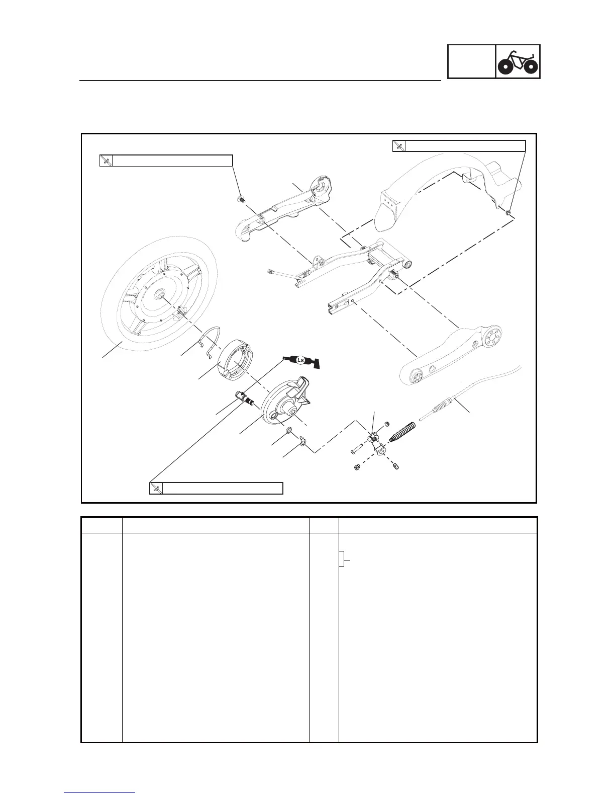 Removing the rear brake Remove the parts in the order listed.