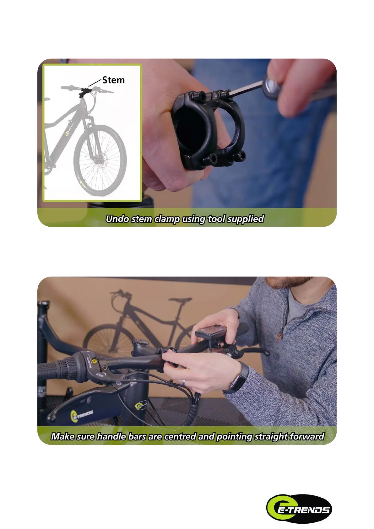 E-TRENDS TREKKER - Undo stem clamp; Center handlebars