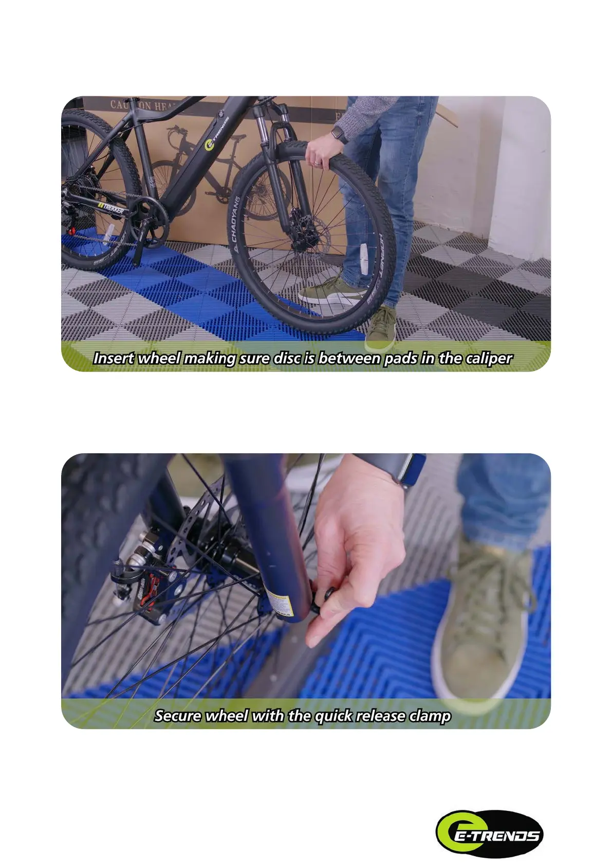 E-TRENDS TREKKER - Insert front wheel; Secure front wheel