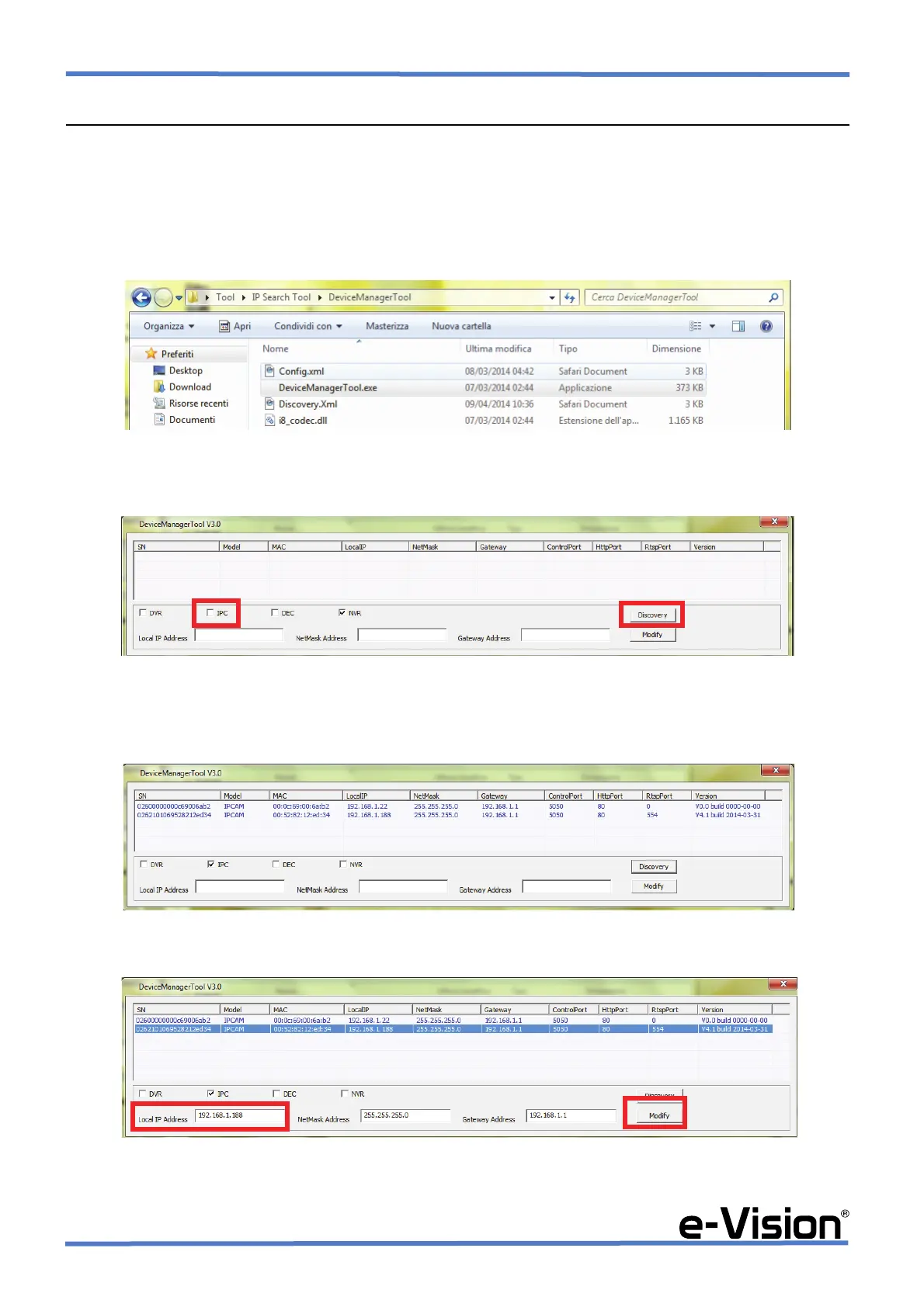 Nella cartella Tool > IP Search Tool > DeviceManagerTool selezionare il file DeviceManagerTool.exe.