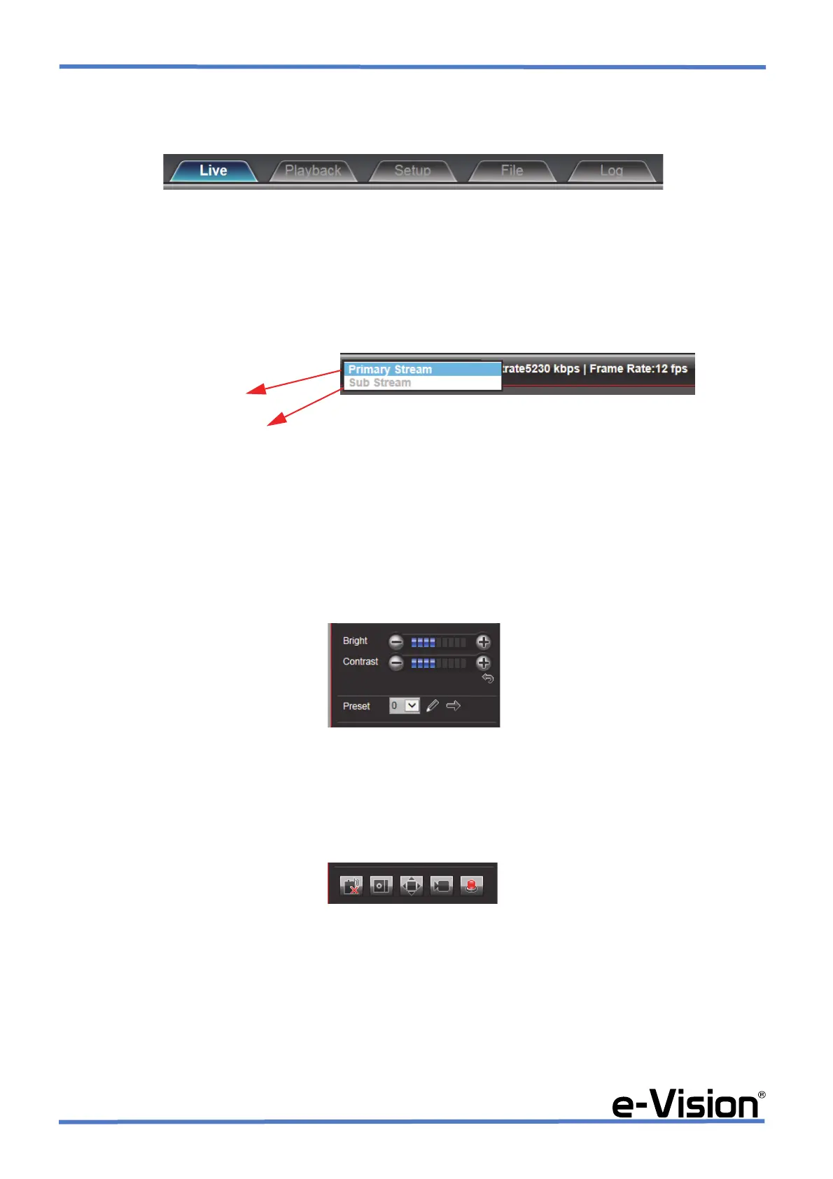 In quest’area è possibile selezionare il tipo di stream per la telecamera (principale o secondario) e la funzione di registra-