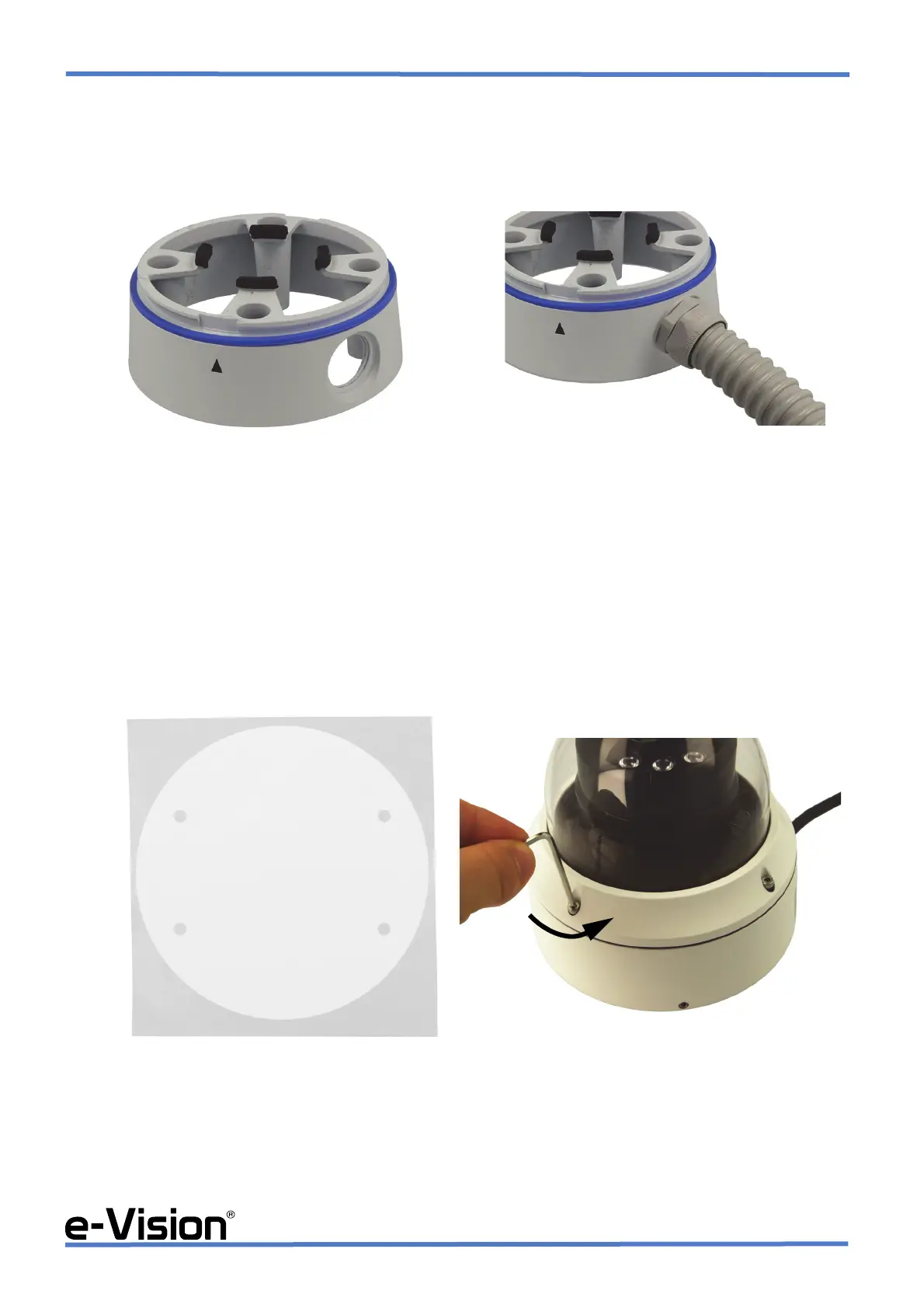 B : Rimuovere la cupola trasparente della telecamera svitando le viti di fissaggio con la chiave a brugola in dotazione.