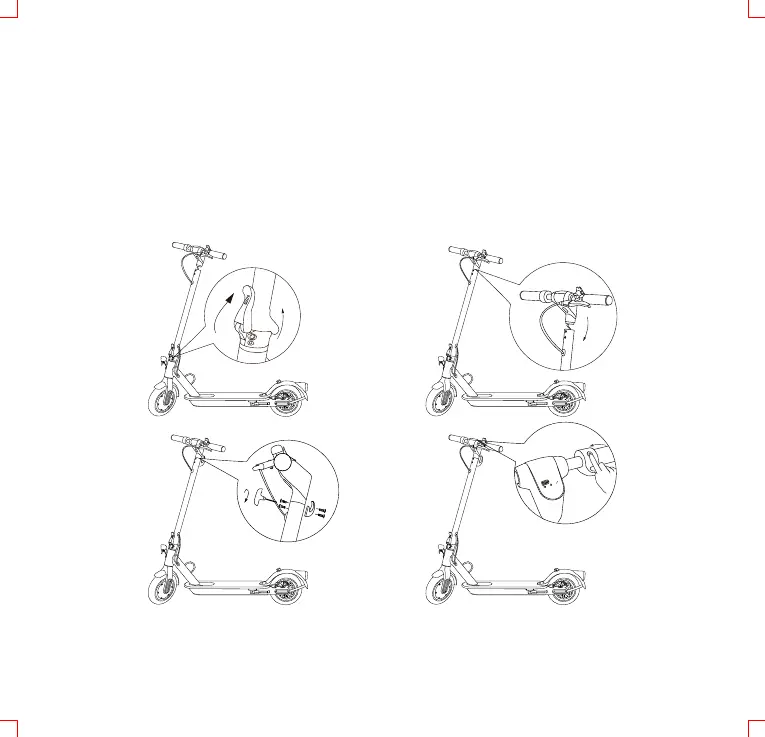 Lyft upp och spärra styrstången på plats med spärrmekanismen. Anslut
