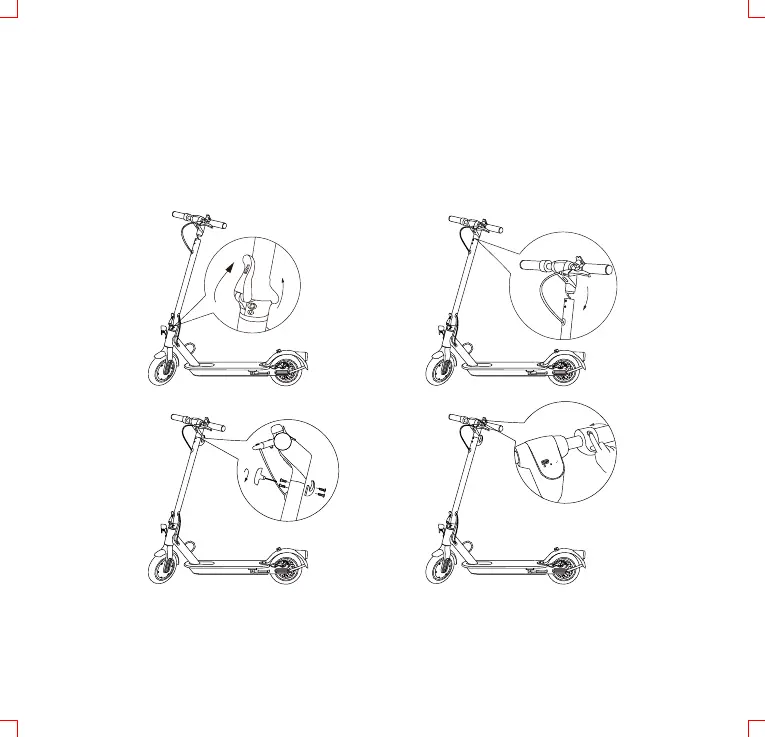 Løft opp styrestangen og lås med låsemekanismen. Koble sammen