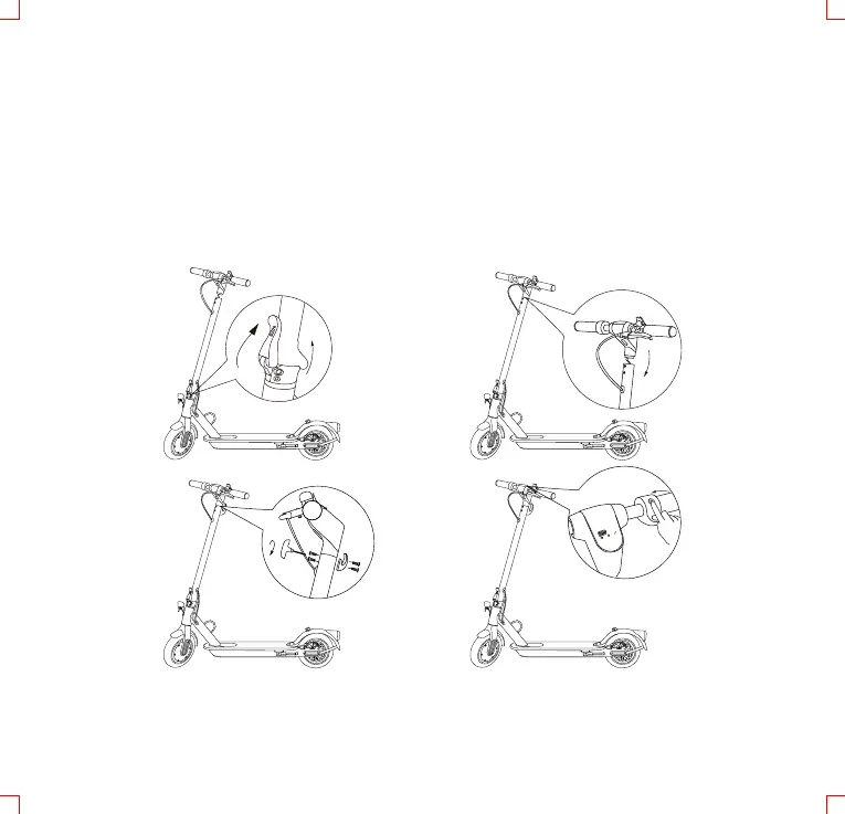 Lyft upp och spärra styrstången på plats med spärrmekanismen. Anslut