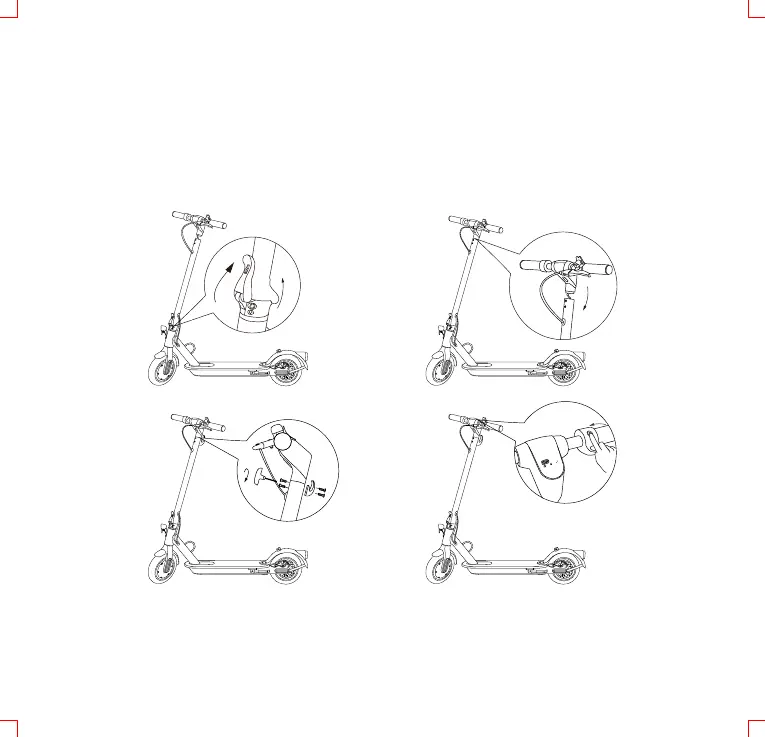 Løft opp styrestangen og lås med låsemekanismen. Koble sammen