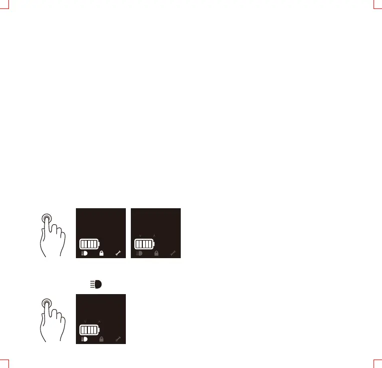 ● Strøm AV/PÅ-knapp: Hold knappen inne i 3 sekunder. Alle ikonene lyser