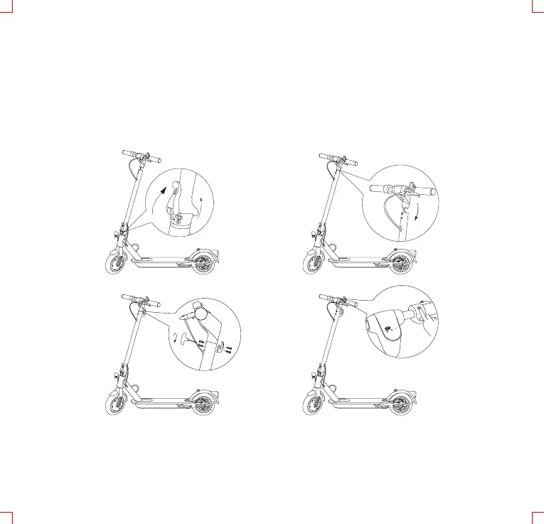 Løft opp styrestangen og lås med låsemekanismen. Koble sammen