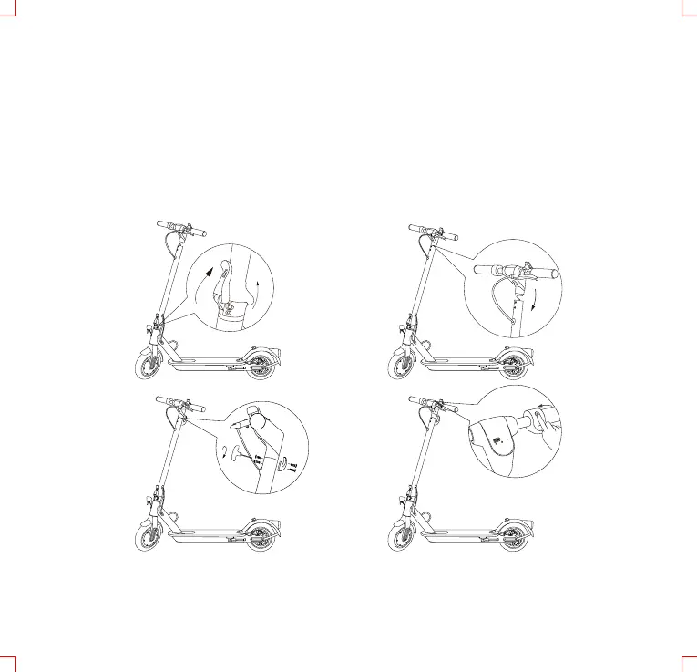 Lyft upp och spärra styrstången på plats med spärrmekanismen. Anslut