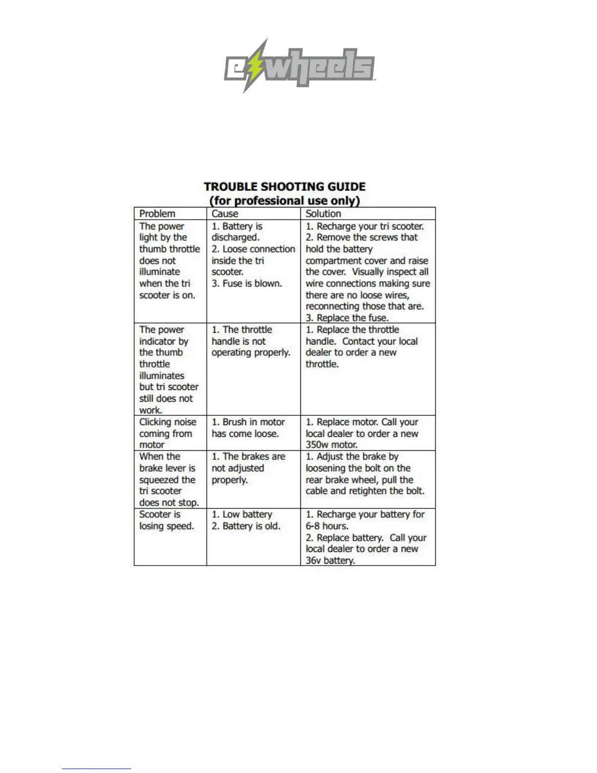 E-Wheels EW-18 - Troubleshooting Guide