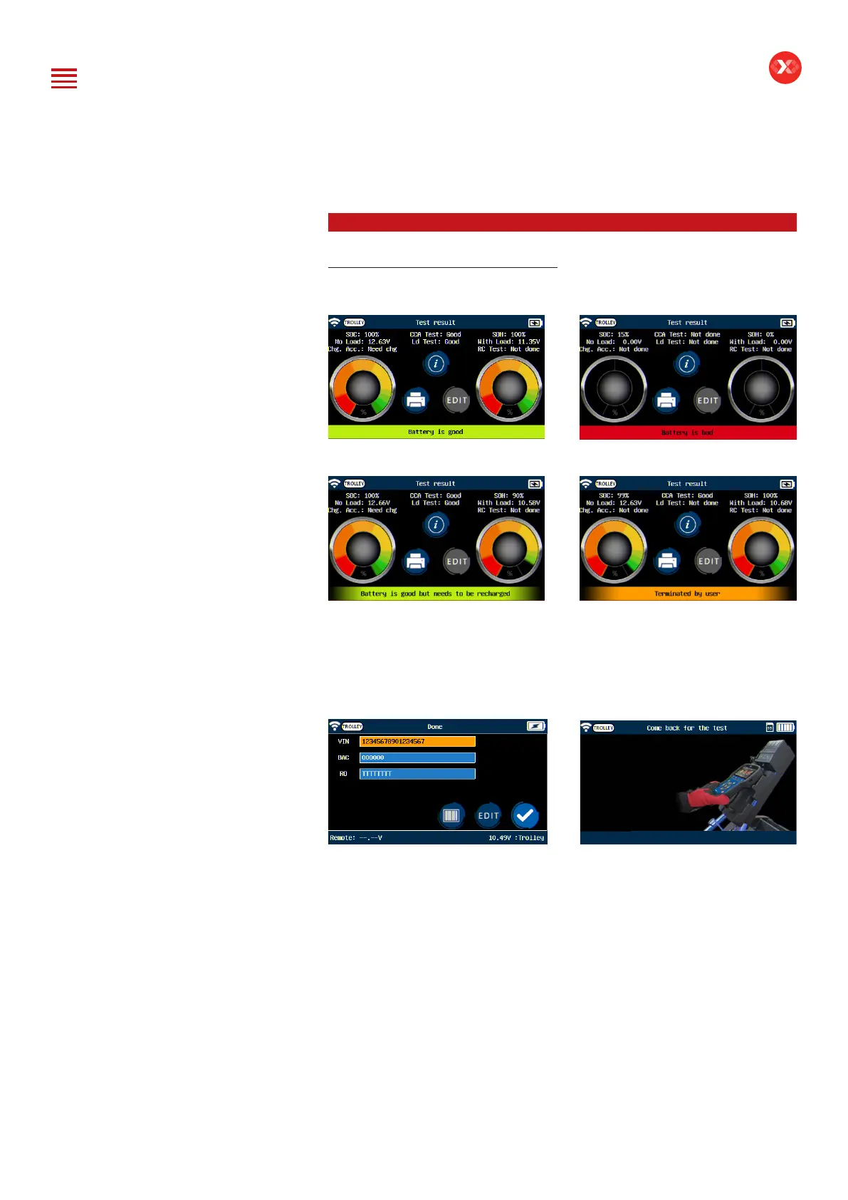Four different possible result screens.