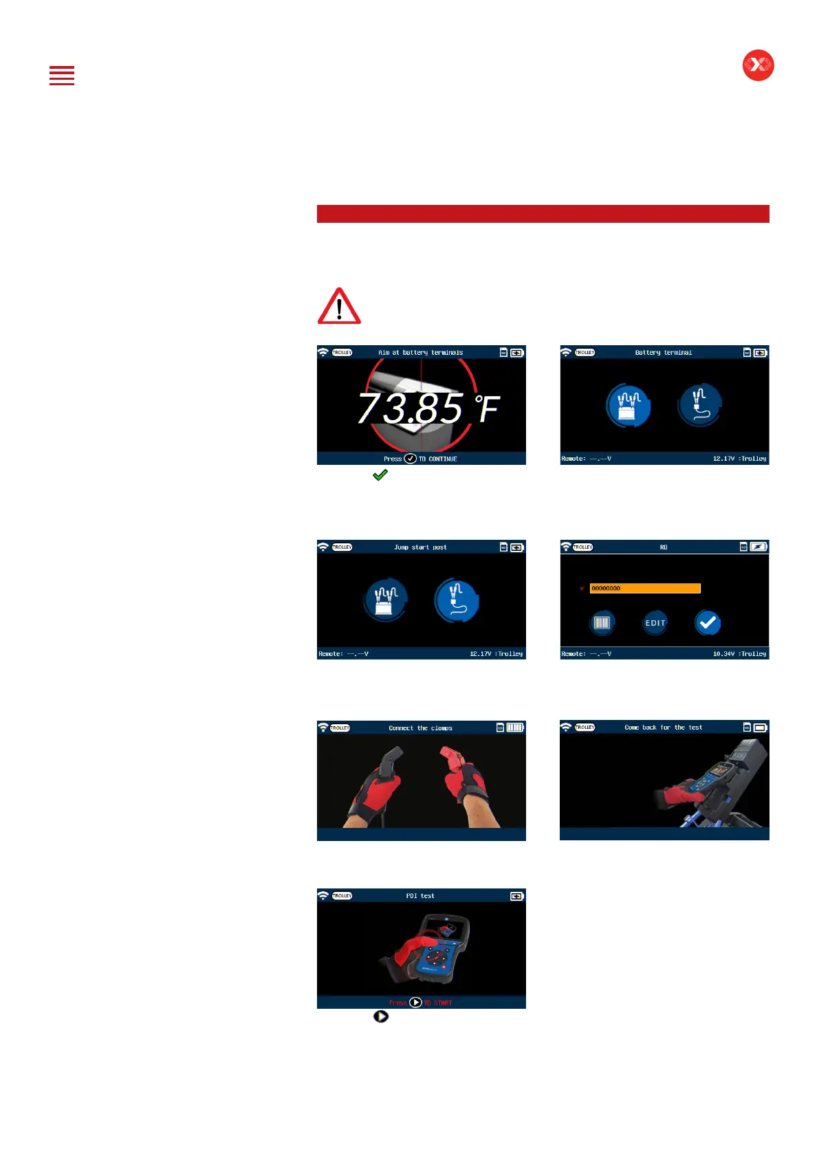 After vehicle or battery selection is made and connection to the trolley