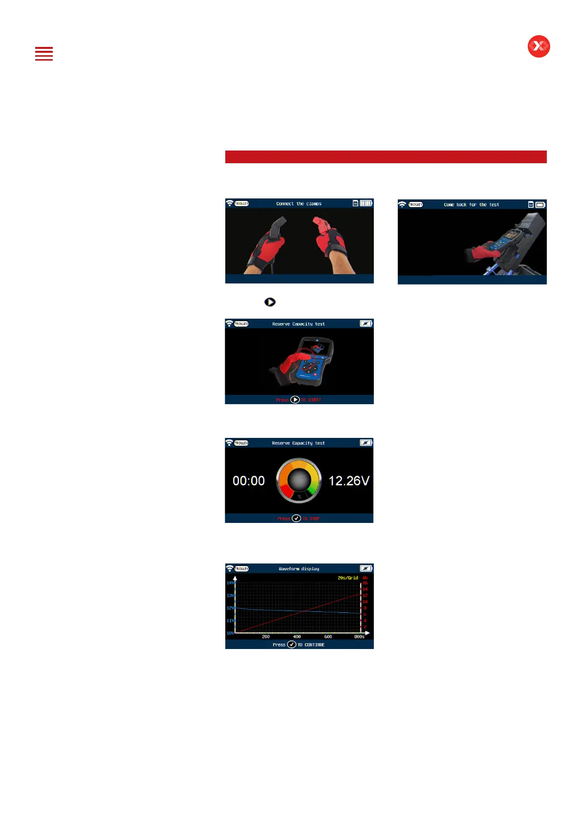 If the clamps are not connected, the tool will ask to connect the clamps.