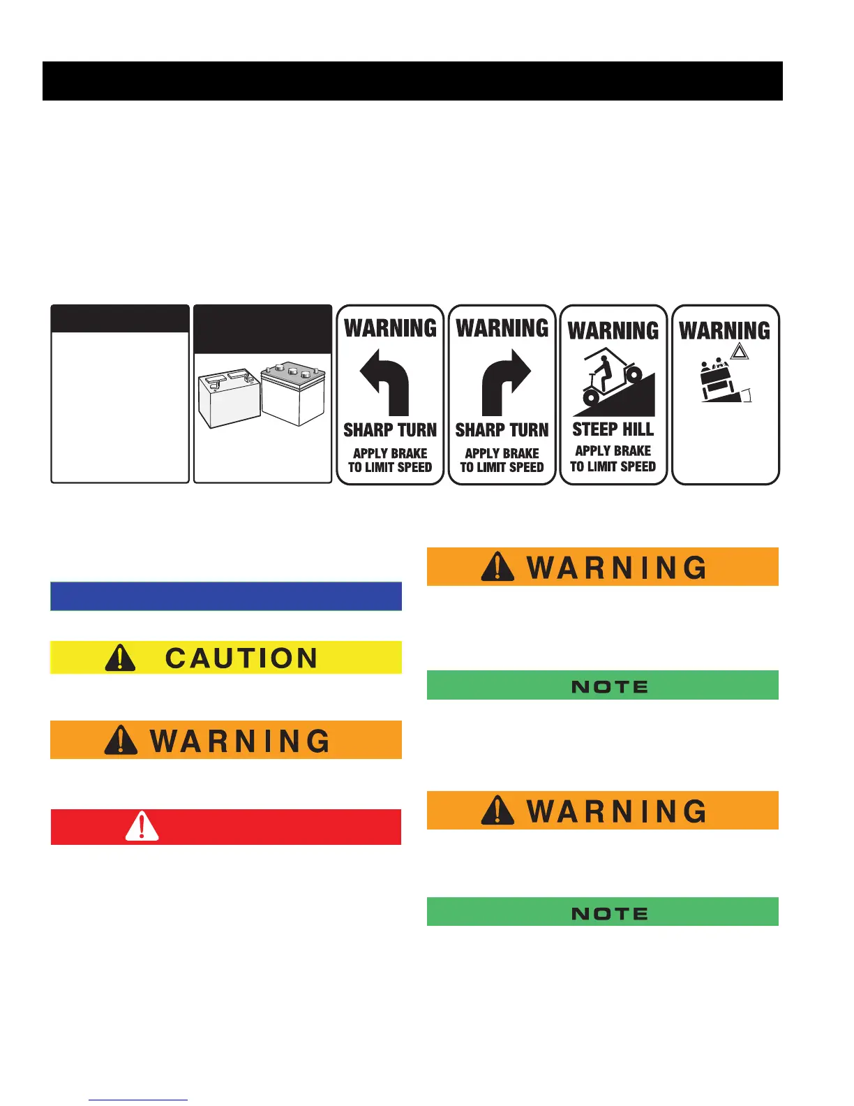 Signs similar to the ones illustrated should be used to warn of situations that could result in an unsafe condition.