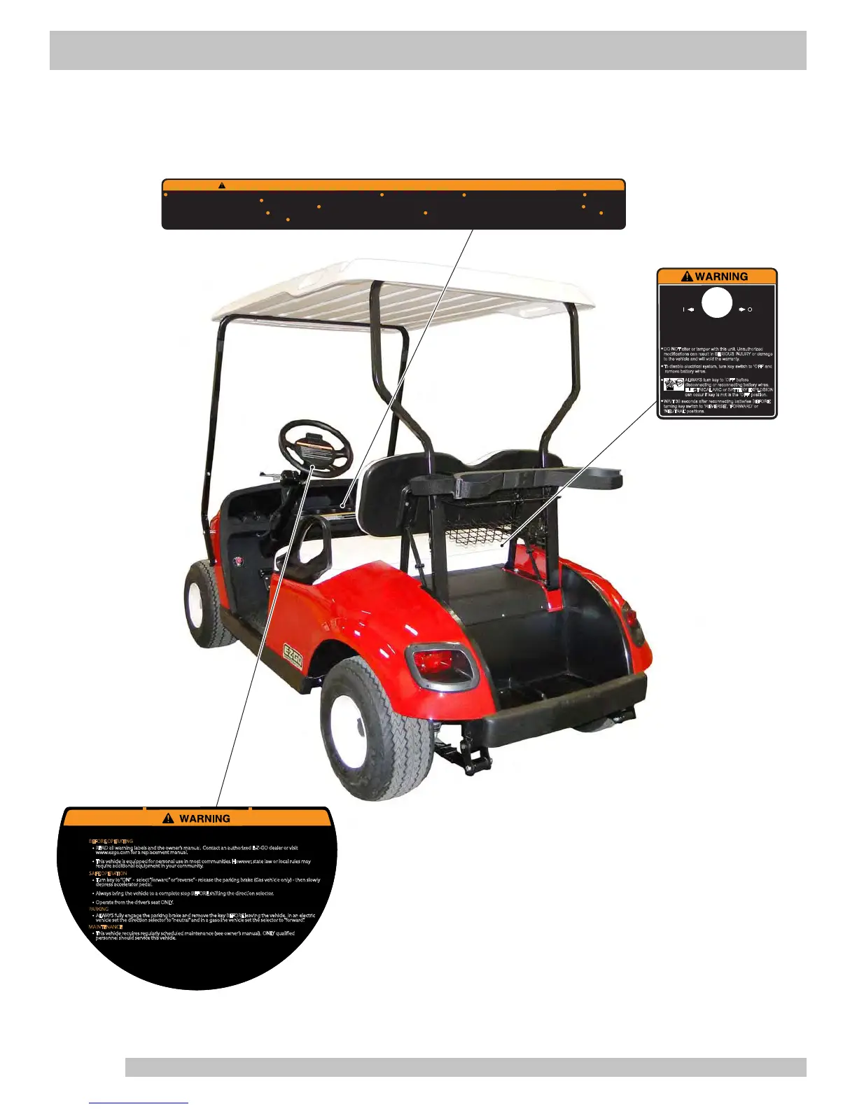 READ all warning labels and the owner’s manual. Contact an authorized E-Z-GO dealer or visit