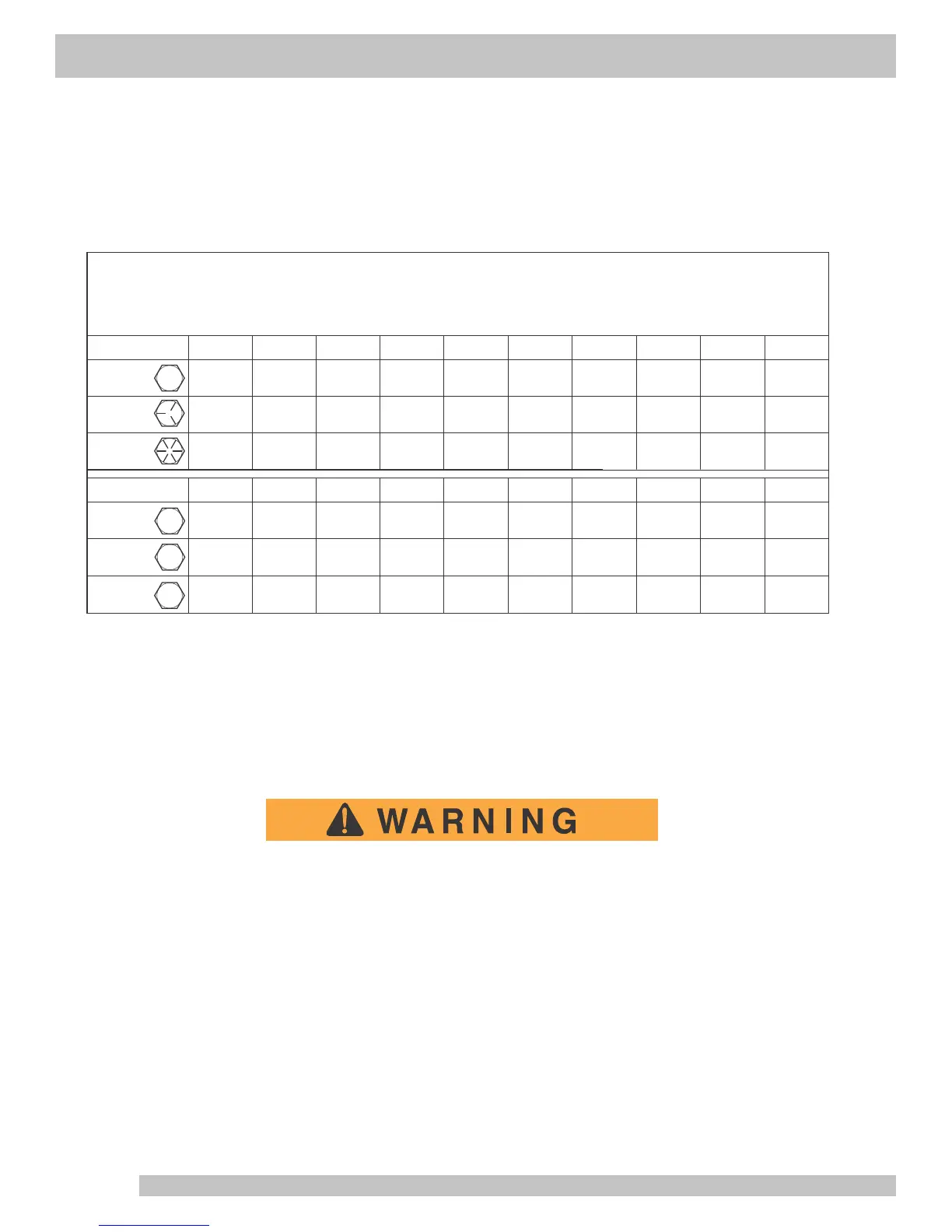 Unless otherwise noted in text, tighten all hardware in accordance with this chart.