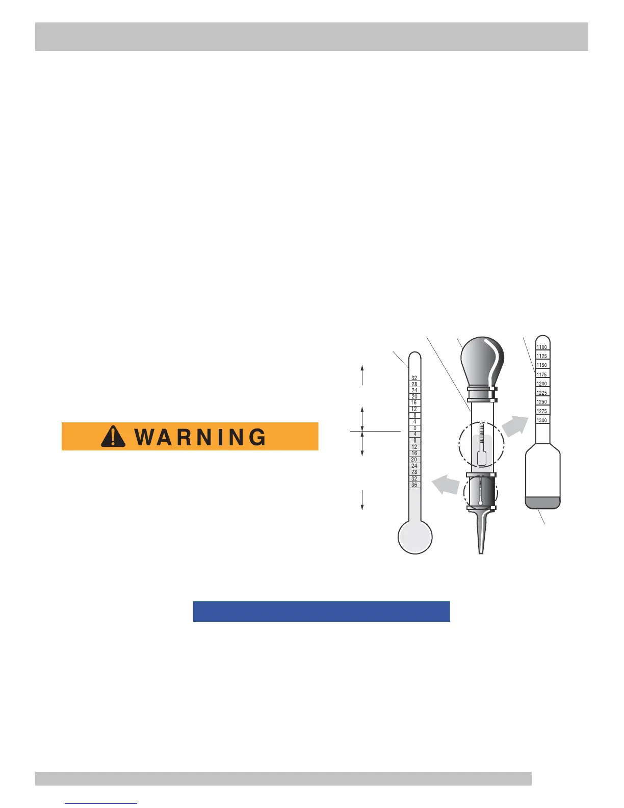 A hydrometer (P/N 50900-G1) is used to test the state of