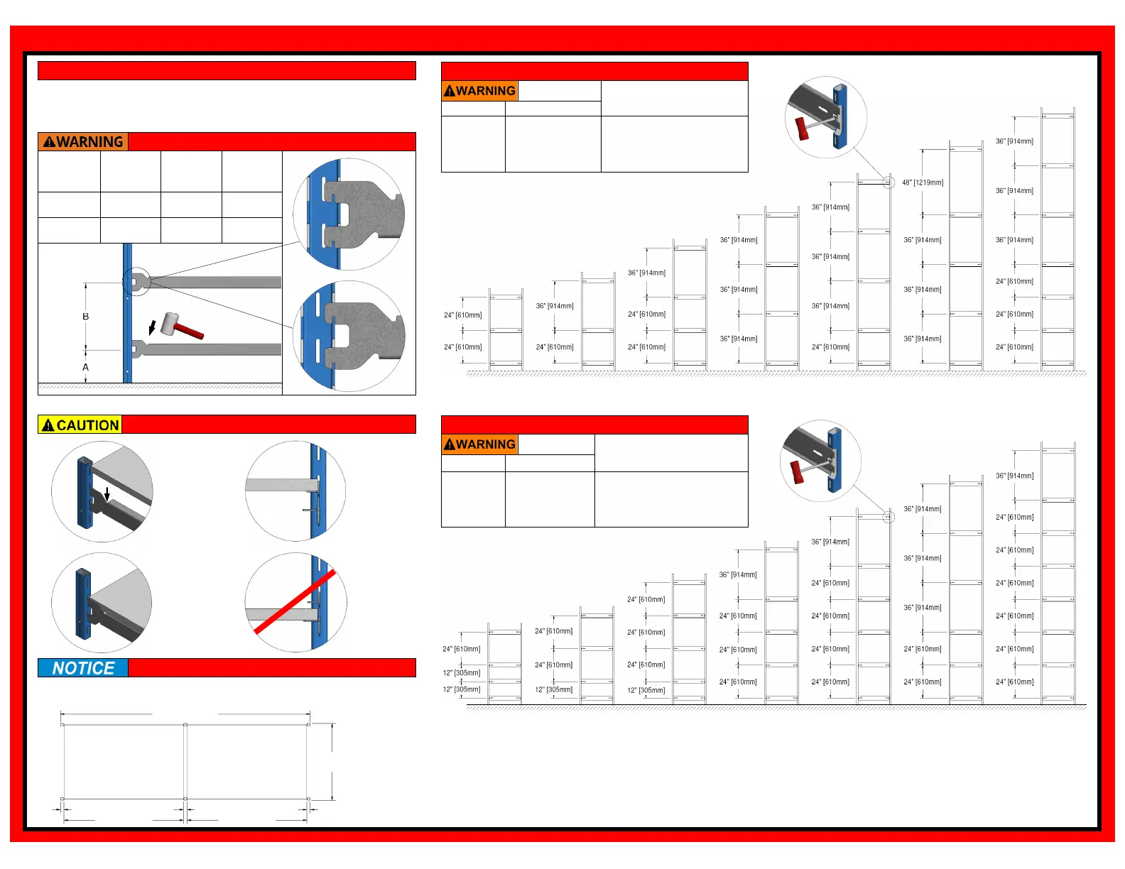• Always lock all post connectors on both sides to the posts that make up the shelving end frame. Refer to the assembly instructions guide for typical placement.