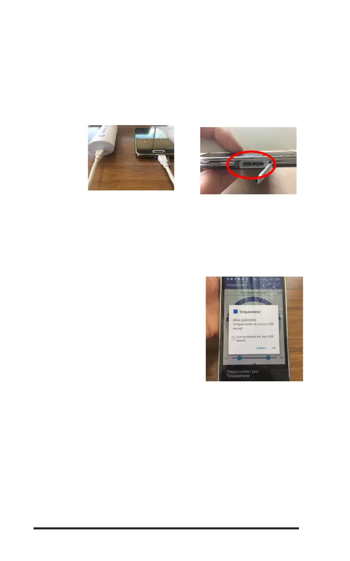 1. Connect the Tongueometer device to your Android device using the OTG cable. Please note
