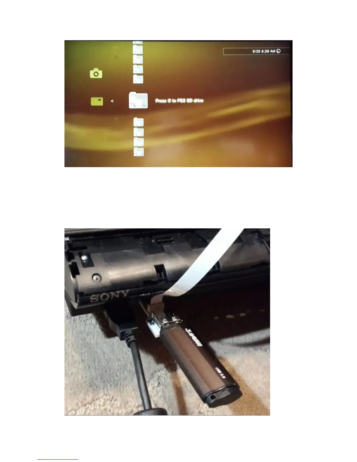 Connect the USB storage to the E3 USB board which plug into the PS3 USB