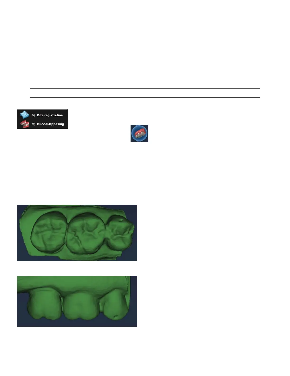 The opposing teeth are scanned to acquire bite information for the proposal. The buccal bite is scanned to