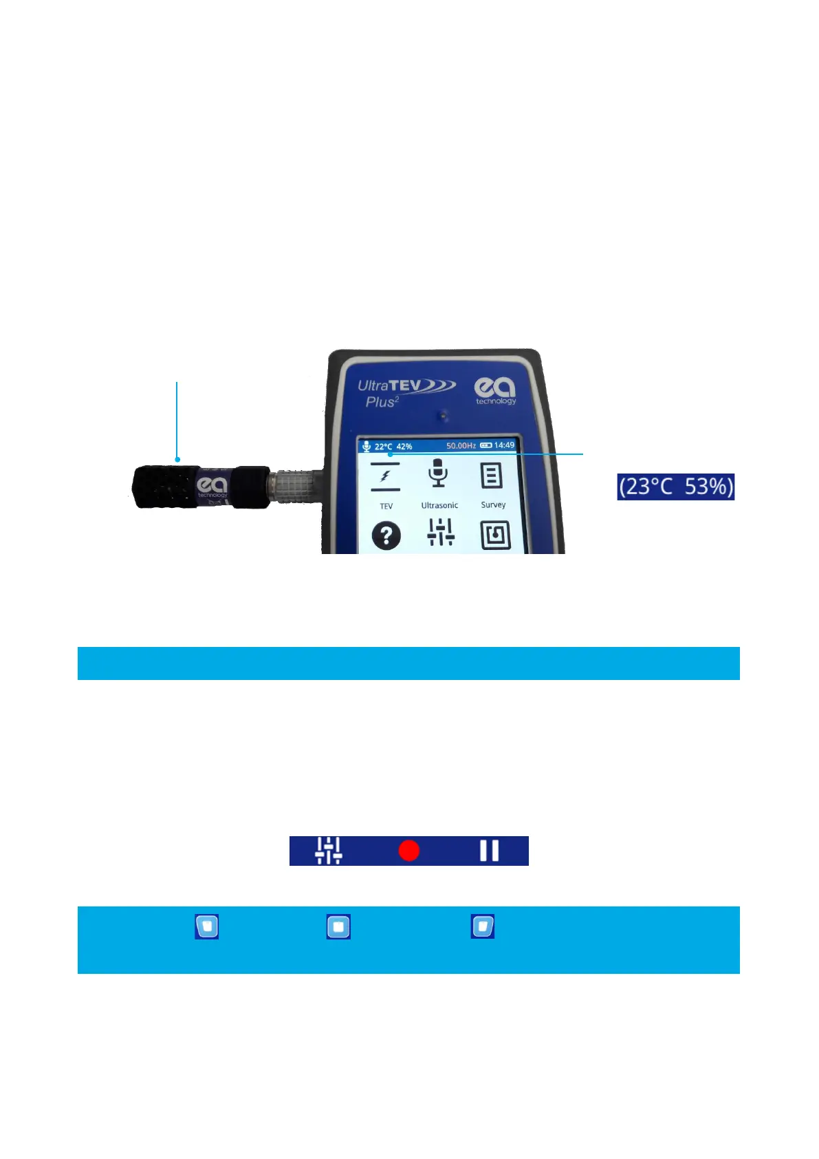 The connection of the accessory automatically starts the data collection with the latest reading being displayed