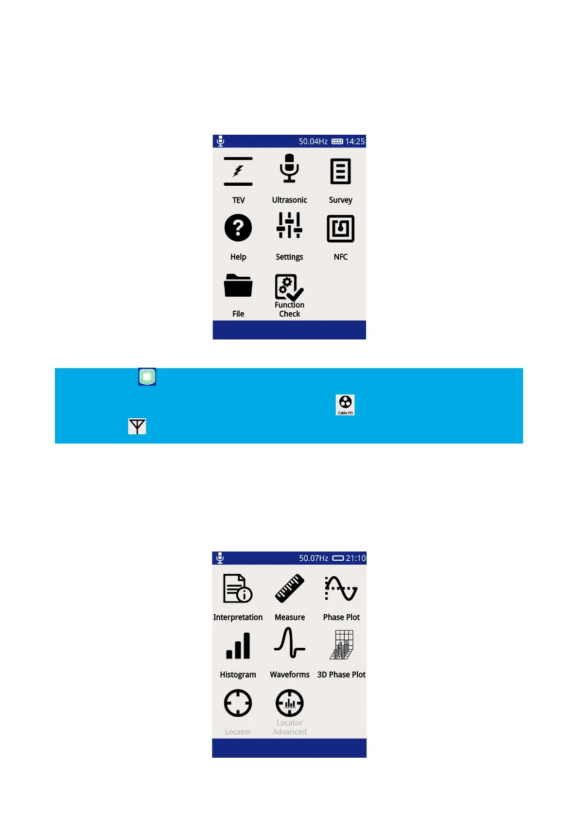 The TEV icon on the main screen will change to a Cable PD icon when a HFCT accessory is plugged in