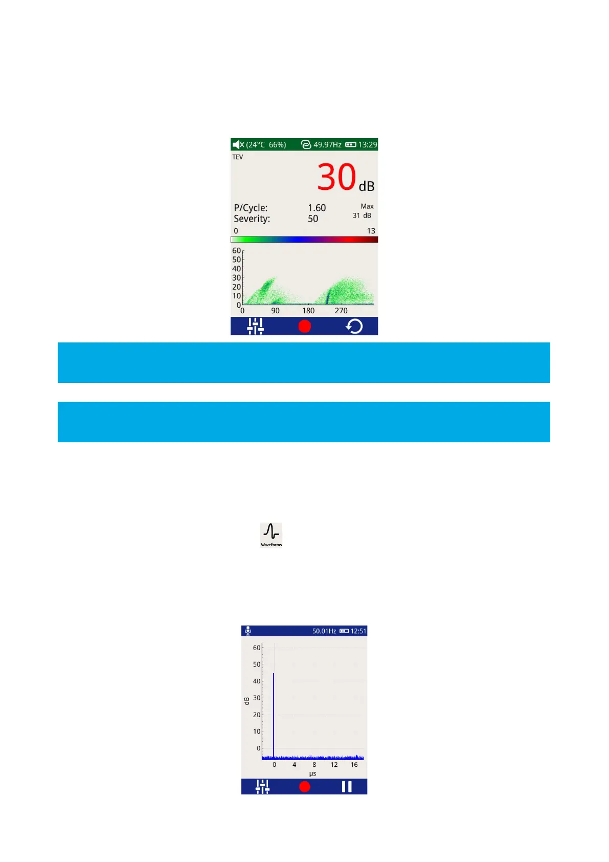 The ‘Waveform’ mode is common to both TEV and Cable PD. When in Cable PD mode, values will be displayed