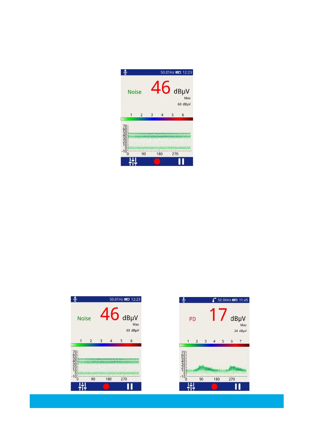 PD activity will be displayed as a stable area which will occur at the same to phase angle each cycle; whilst