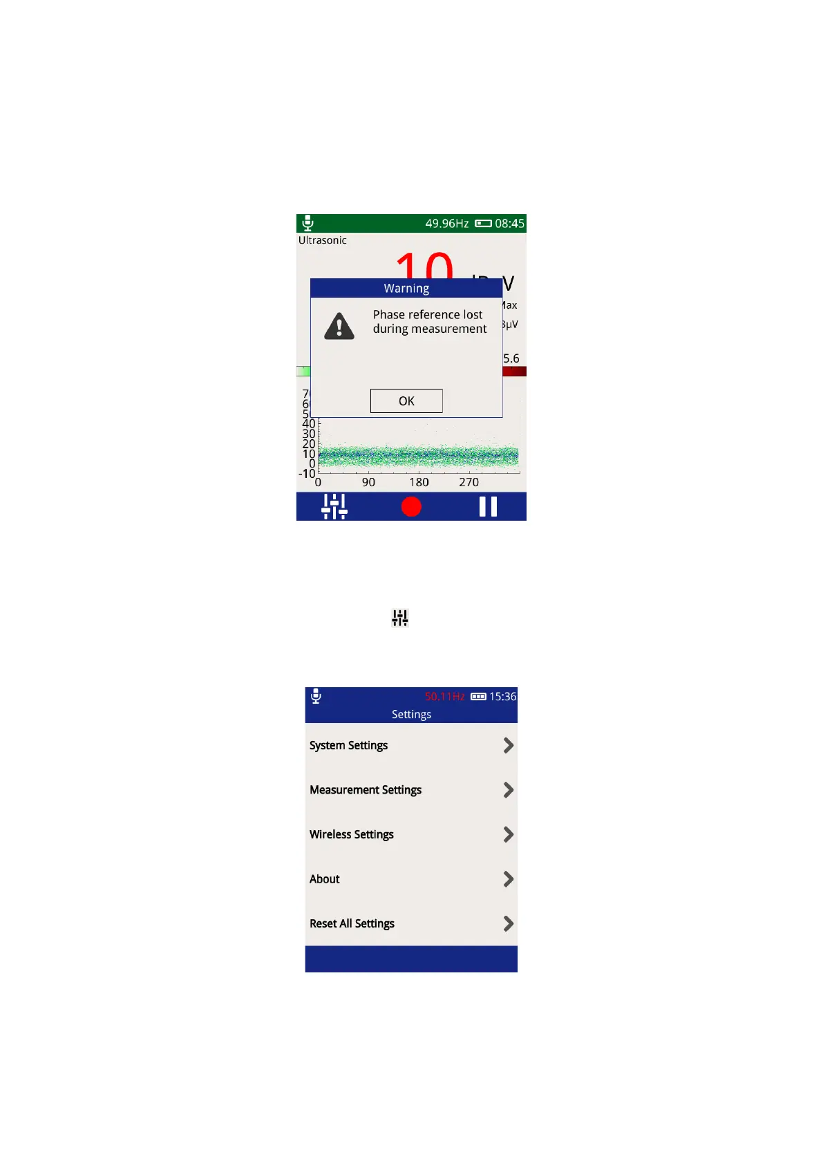 lock is lost at any time during a capture the unit displays a warning message on completion of the recording.