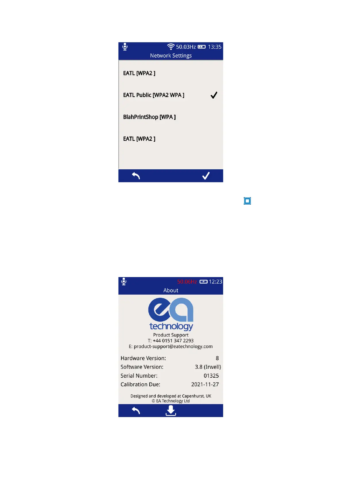 numbers. The display also provides details of EA Technology’s dedicated Product Support team should any