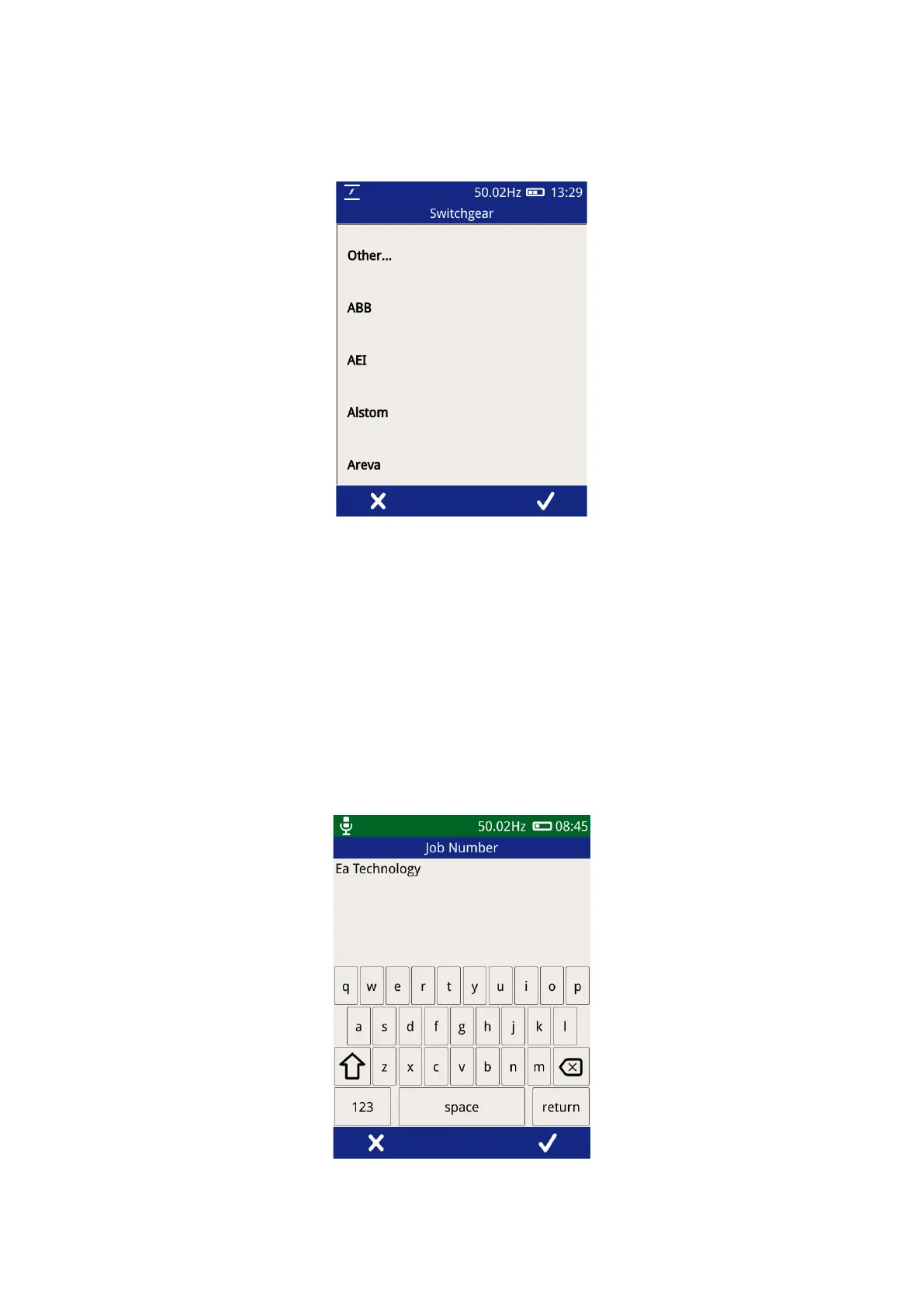 pressing an item then pressing the tick in the menu bar. If the “Other…” option is selected a virtual keyboard
