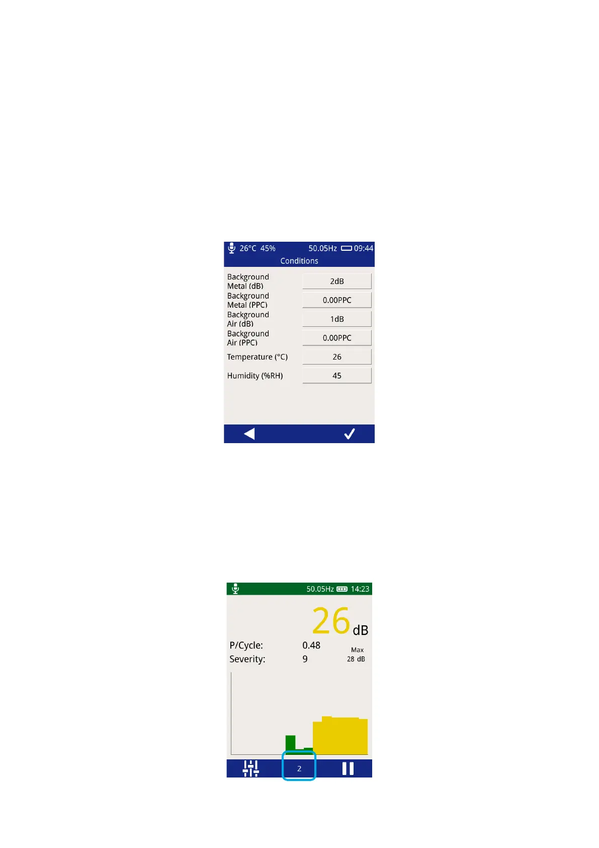 Once a survey has been started, data can be recorded from any TEV, Cable PD, Ultrasonic or UHF displays. The