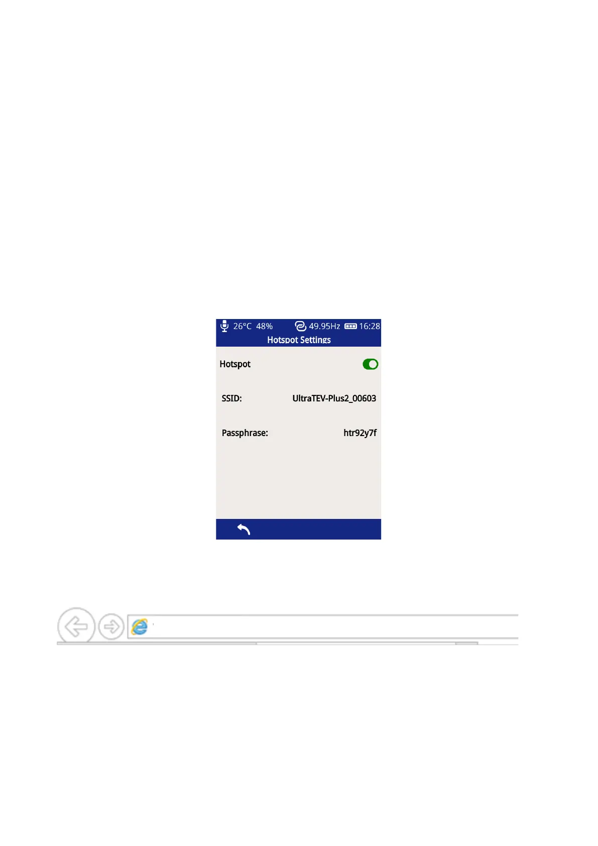• Hotspot – Allows direct connection via the UTP2 personal hotspot to a Wi-Fi enabled device.