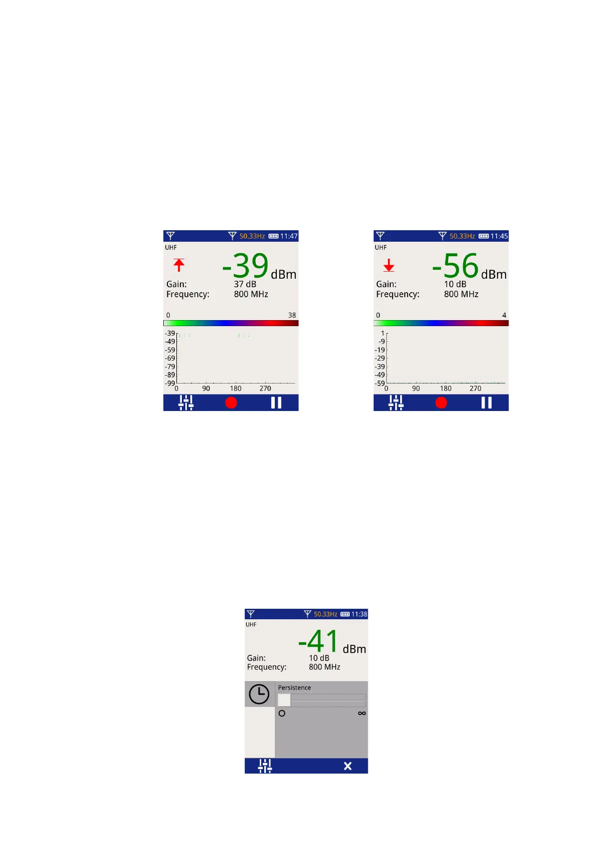 On the Phase Plot and Histogram screens, it is possible to control the persistence of the display.