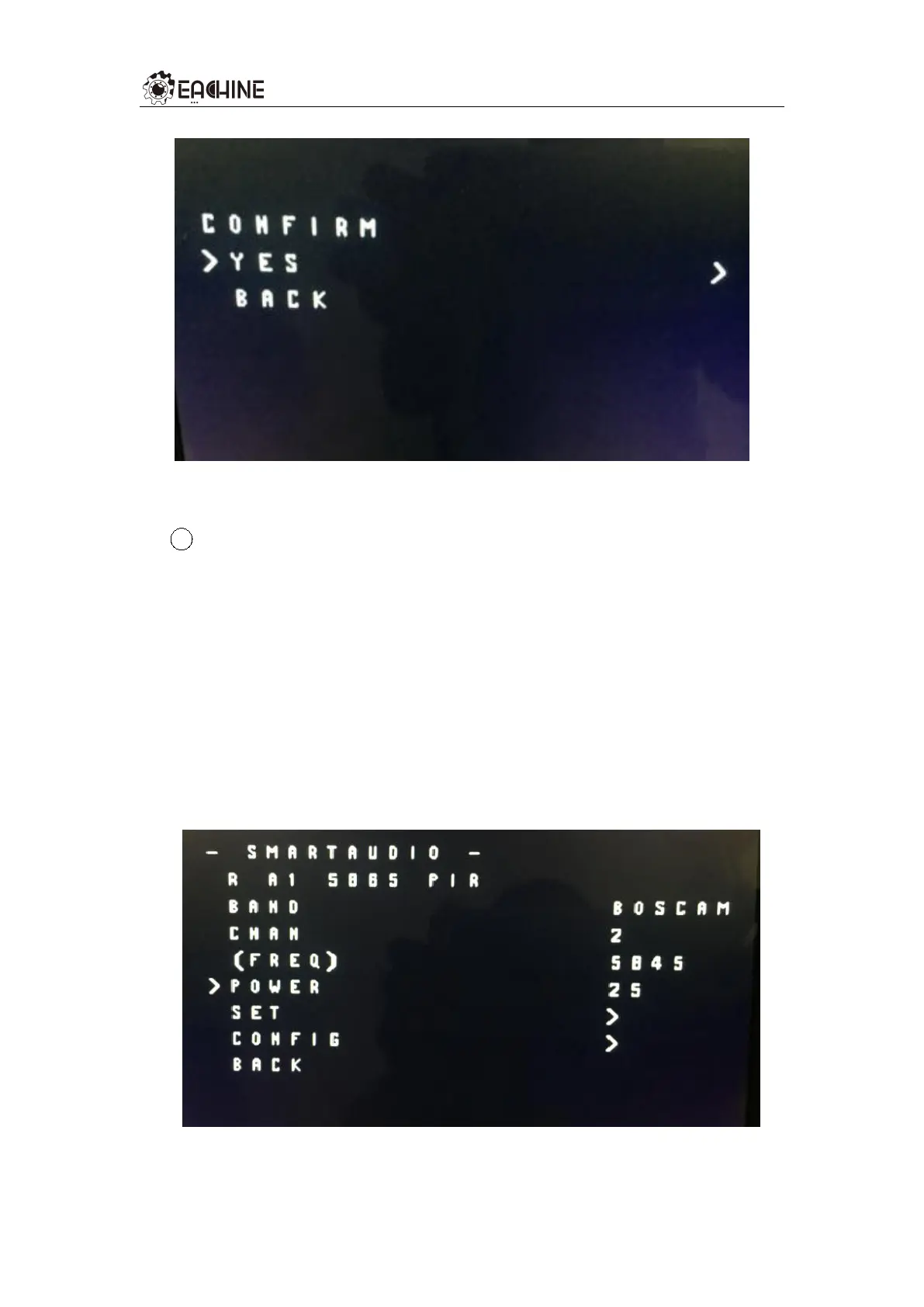 while the POWER menu with OSD parameters has four options: 25 mW,