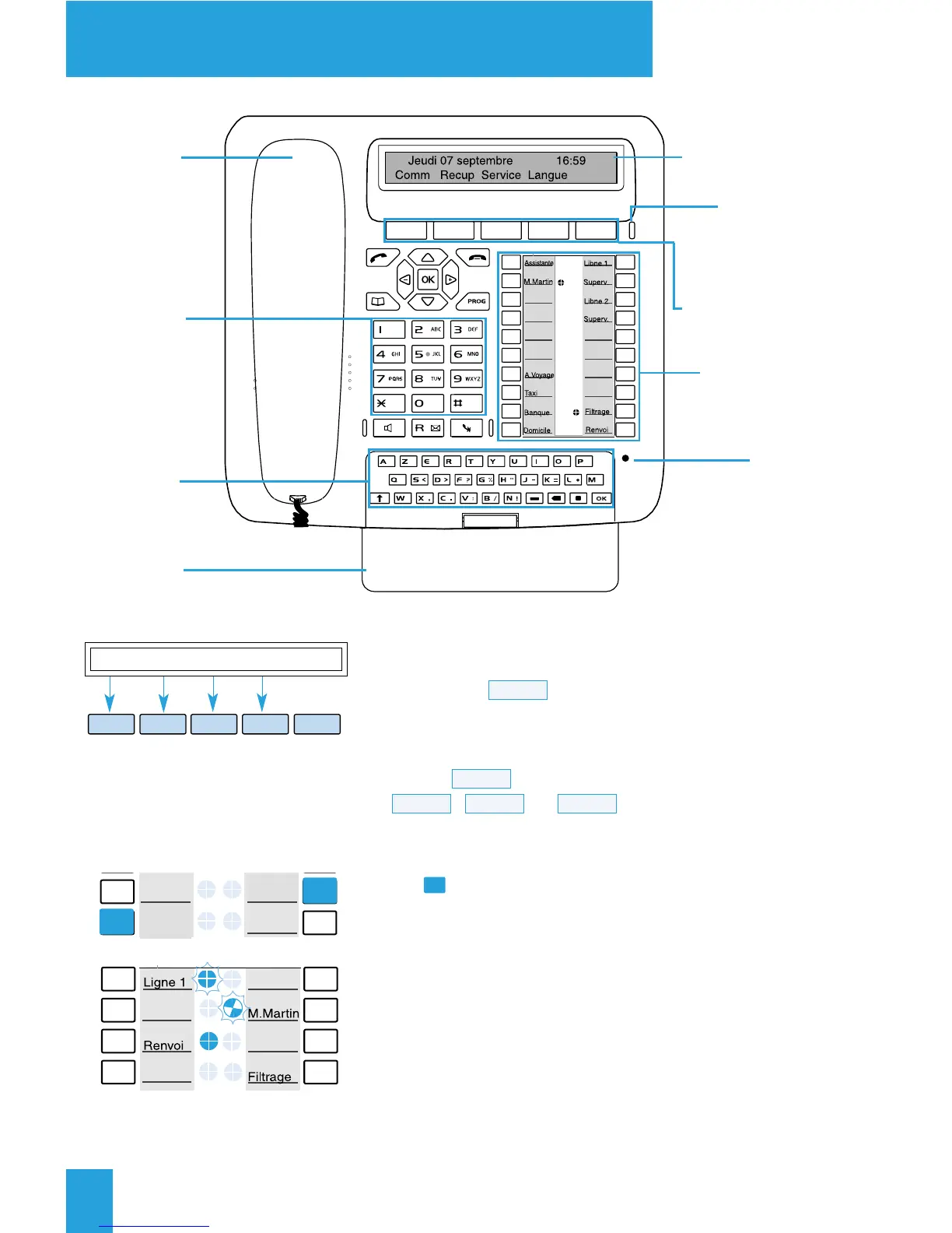 Clavier alphabétique : permet de saisir du texte et d’appeler
