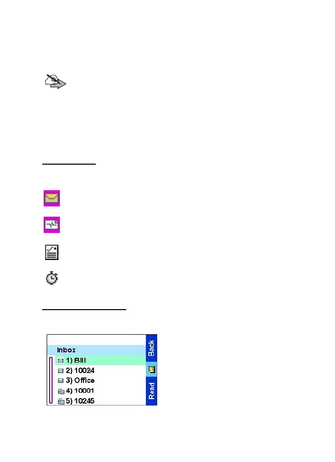 The following icons indicate the status of messages in the