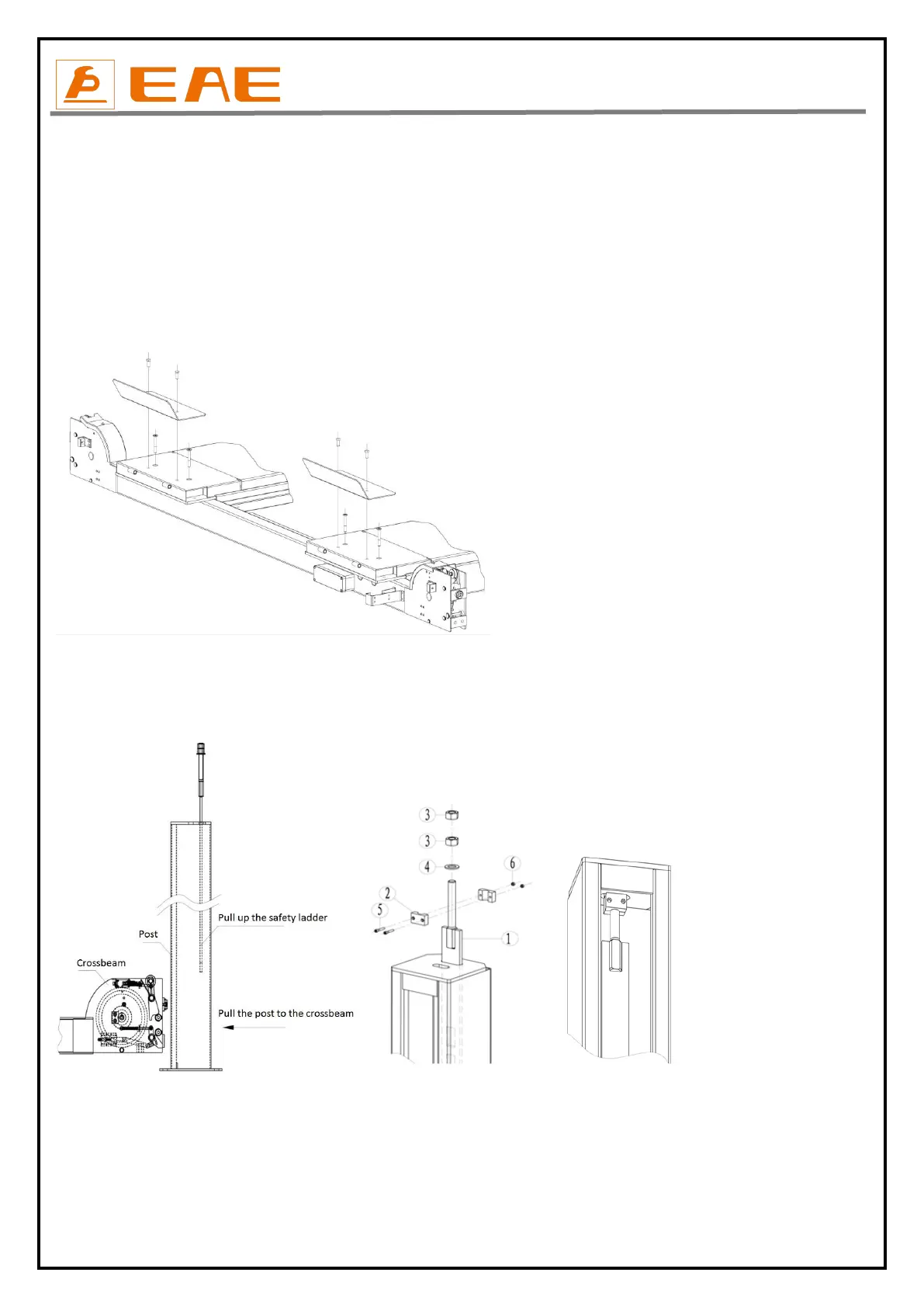 2. Pull the post to the cross beam as the direction arrow showed in the following drawing. Fasten the top end of safety ladders to the top plate
