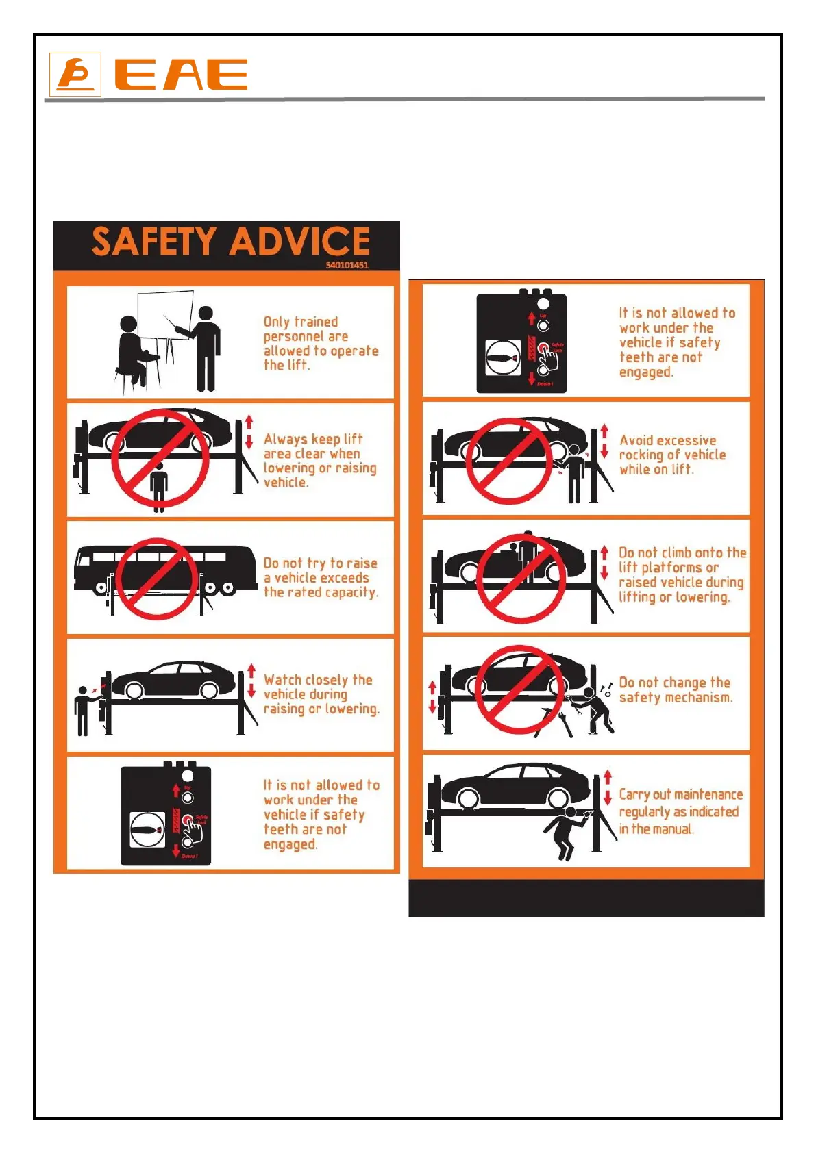 using the lift in an incorrect manner. The labels must be kept clean and they have to be replaced if detached or damaged.