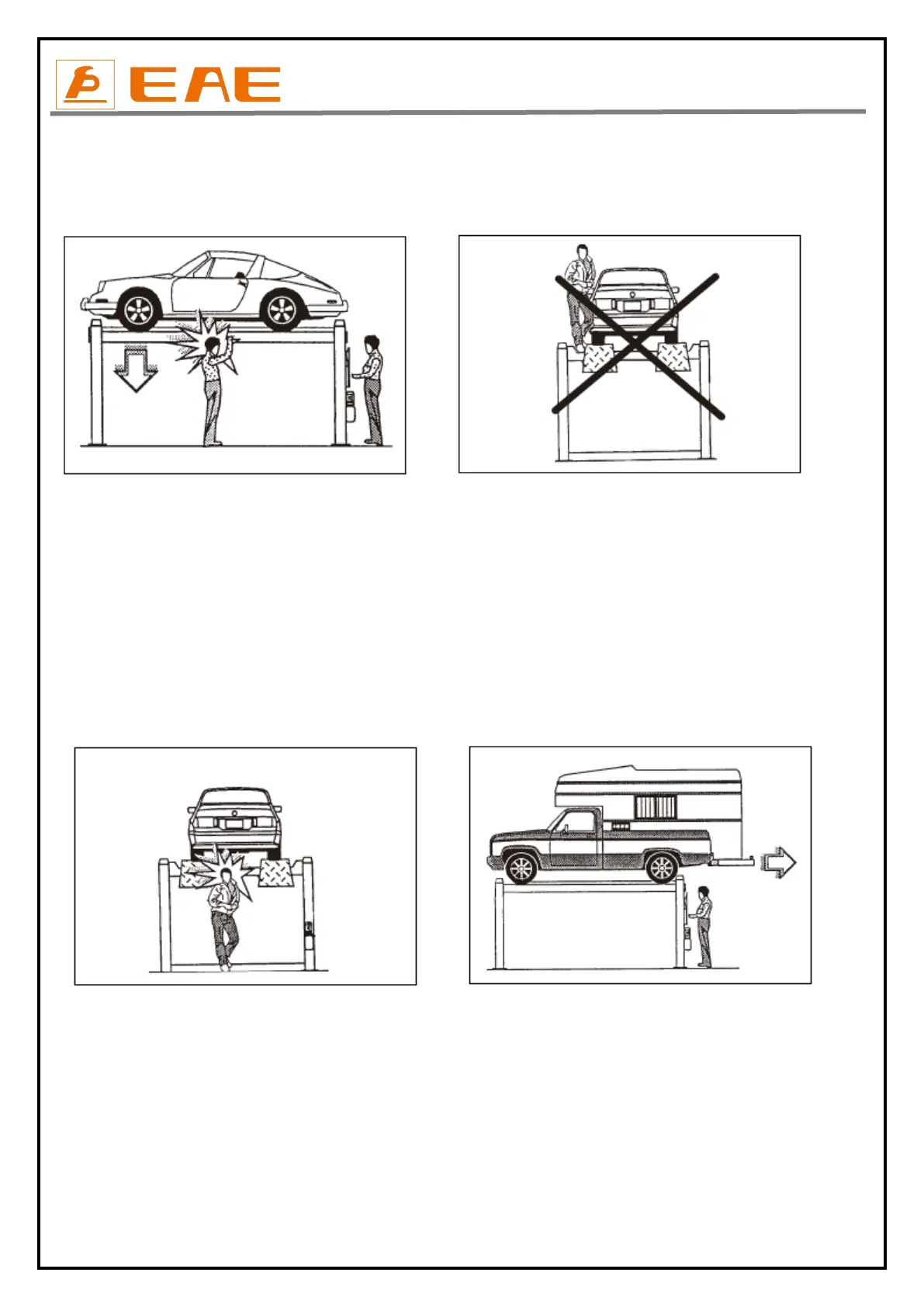When the platforms and the vehicle are lowering personnel are prohibited from entering the area beneath the movable parts of the lift (Fig.4).