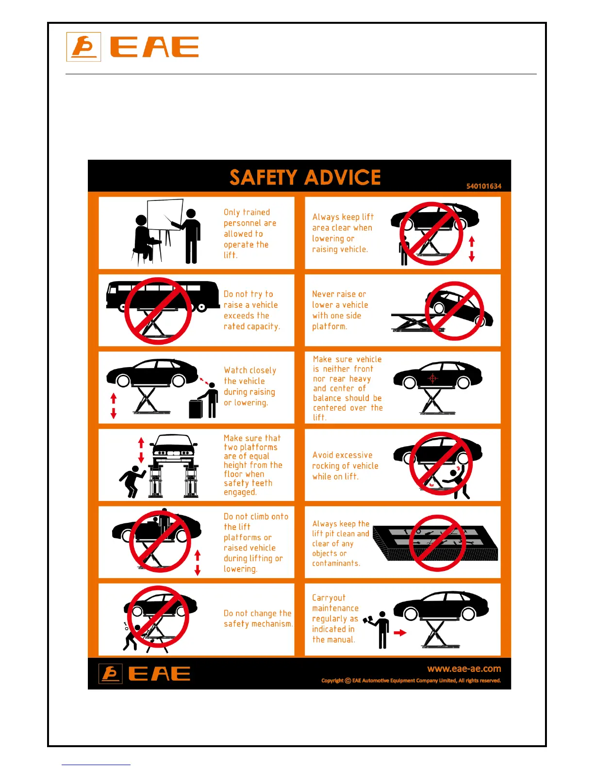 All safety warning labels are clearly depicted on the lift to ensure that the operator is aware of and avoid the dangers of using the lift in an