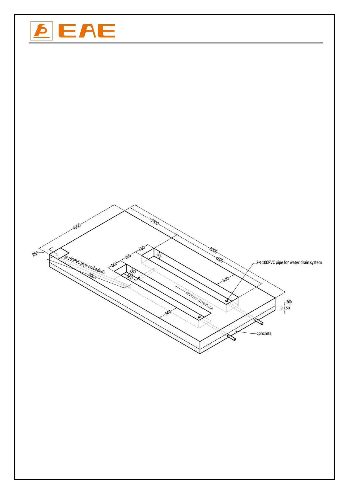 ②C25 concrete foundation with a minimum thickness of 150mm. Concrete Surface under the base plates: Horizontal and even
