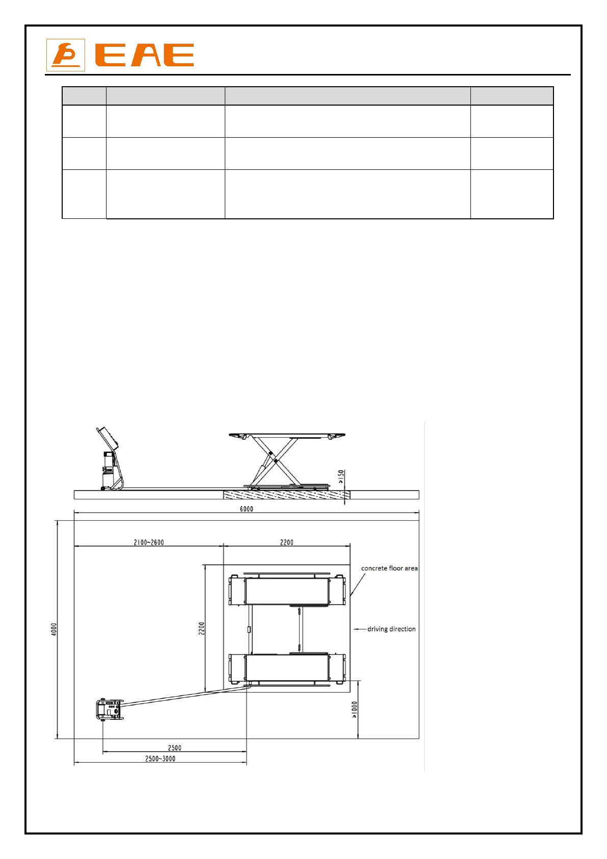 There must also be a clearance of at least 1 meter between the lifting platform and fixed elements (e.g. wall) in all lifting positions. There