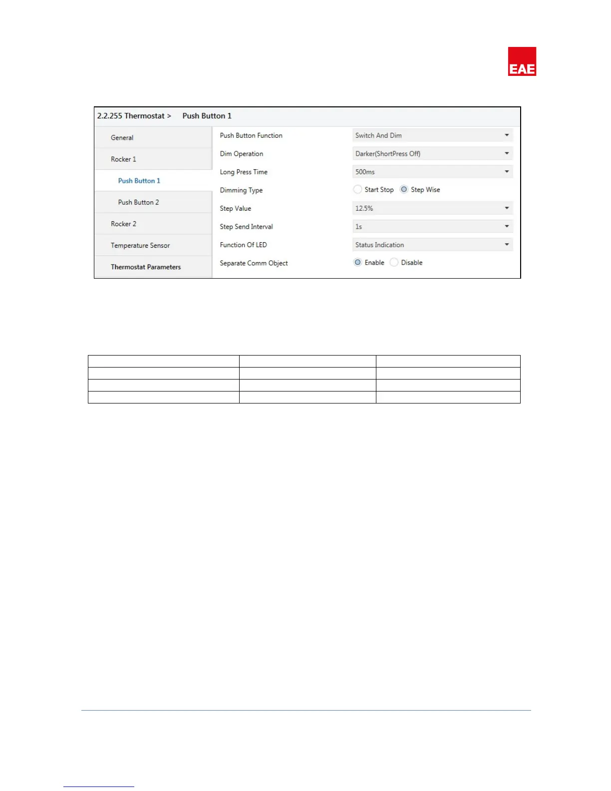value level configured in “Step Value” parameter will be send using respective communication object. If button