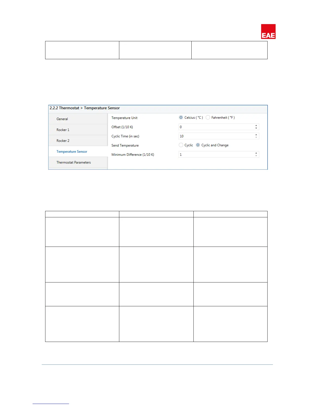Temperature sensor and temperature status parameters should be configured from “Temperature Sensor” tab.