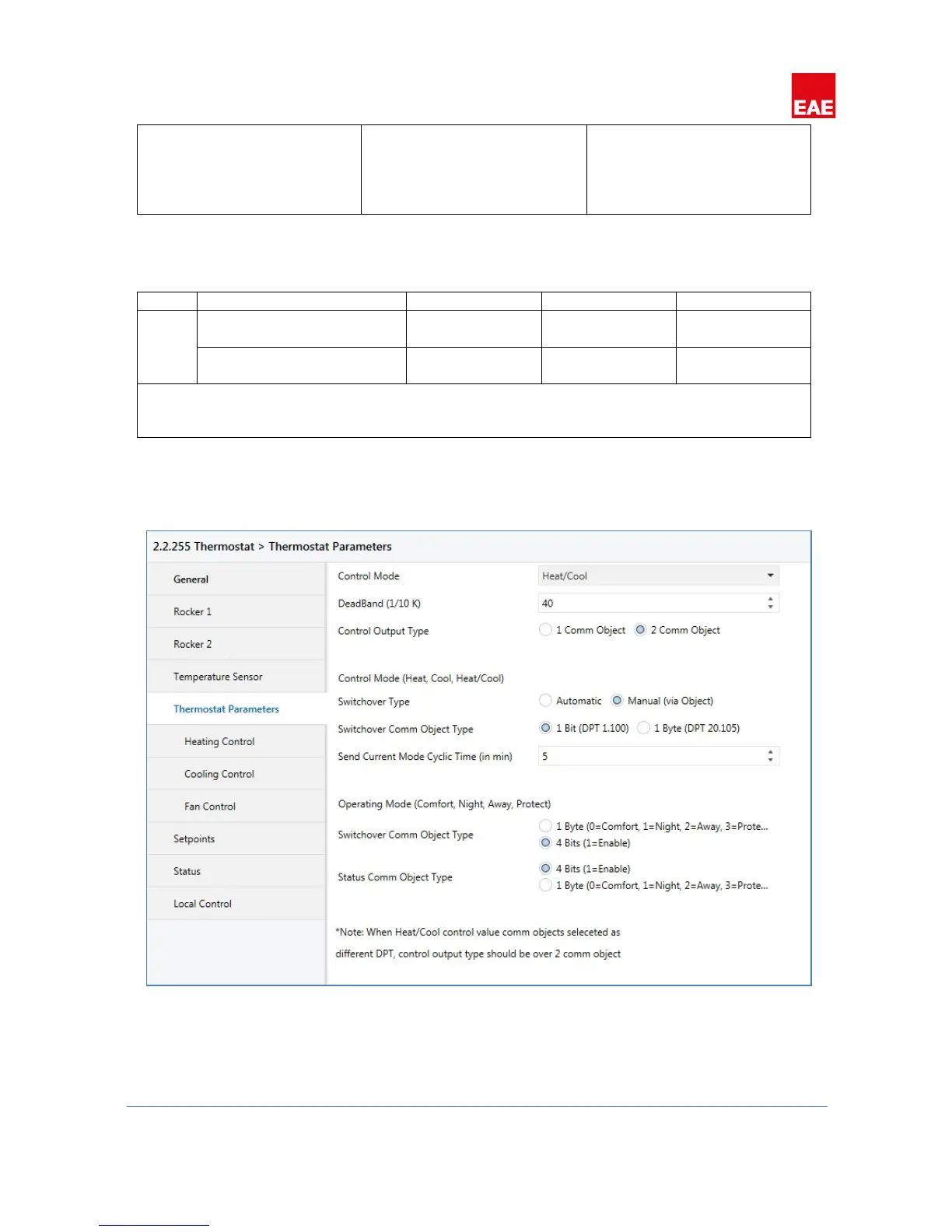Parameters related to thermostat control should be configured in this tab. Whether thermostat will be used for