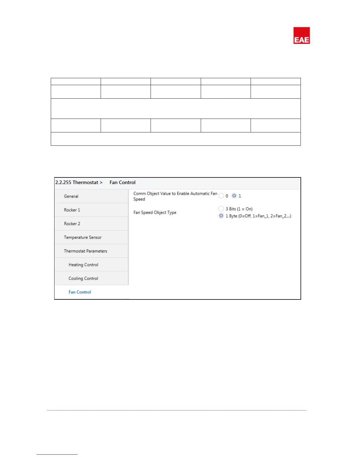 When heating control or cooling control selected as “Fan Coil” or “Split Unit”, “Fan Control” tab will be visible.