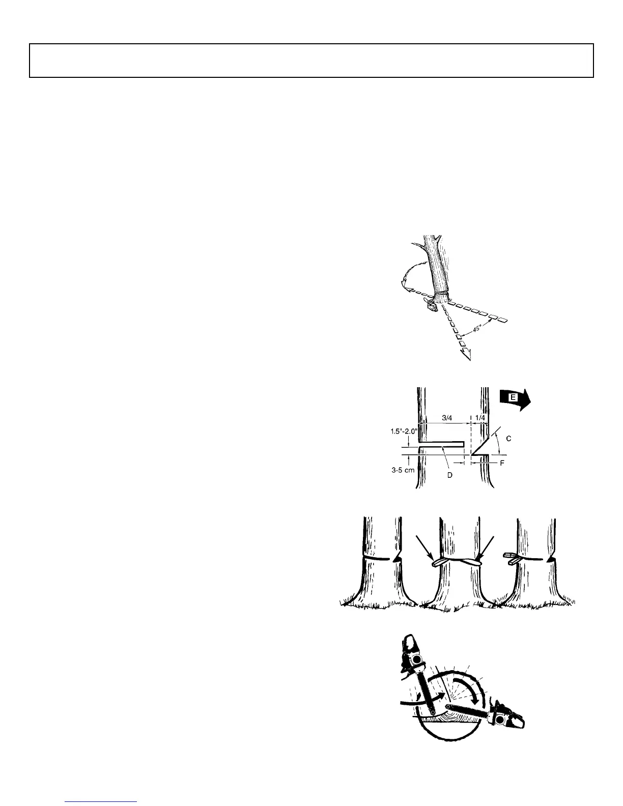 begin to fall. When tree begins to fall, remove saw from cut,